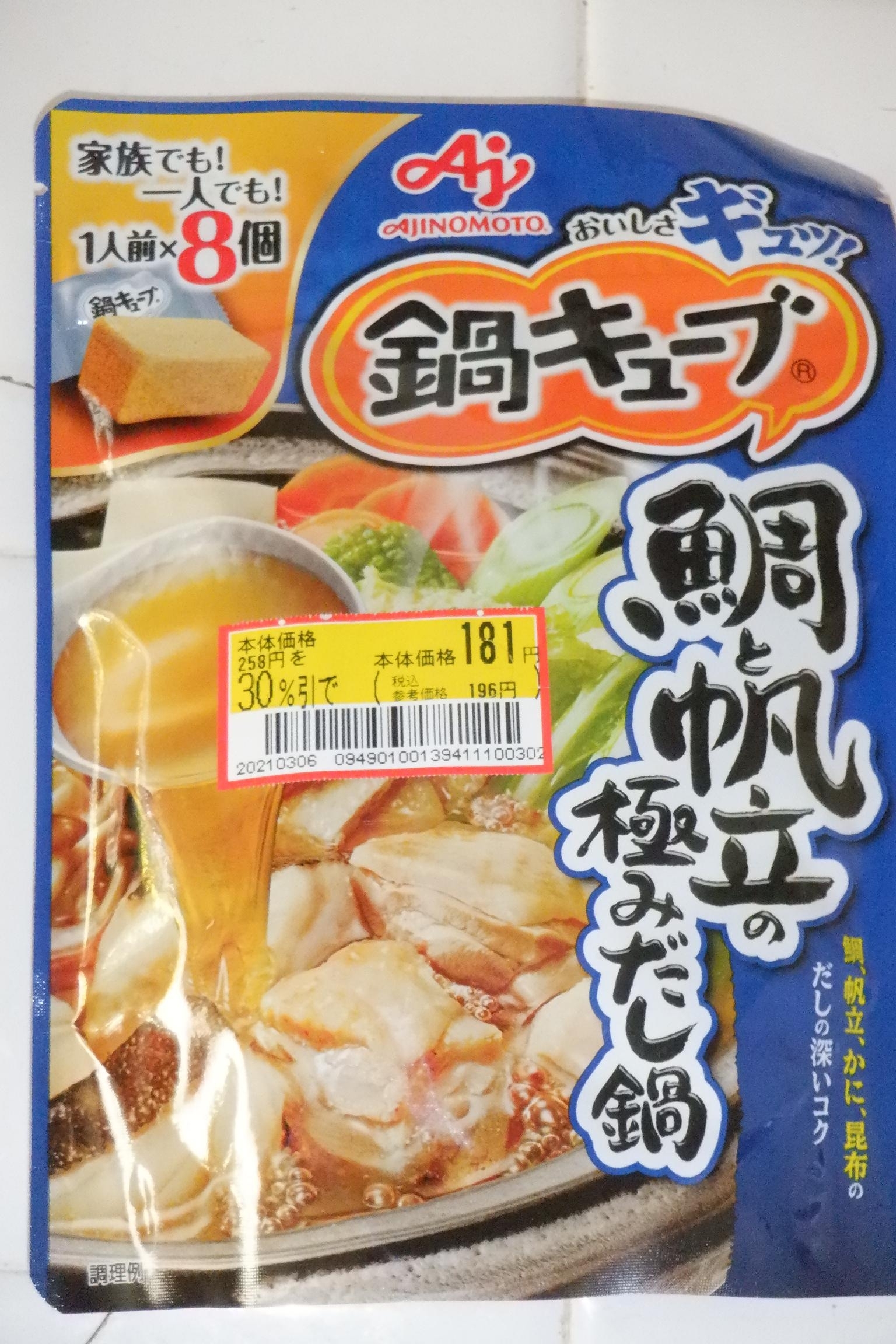 鍋キューブ 鯛と帆立の極みだし鍋 味の素 たまに食記録